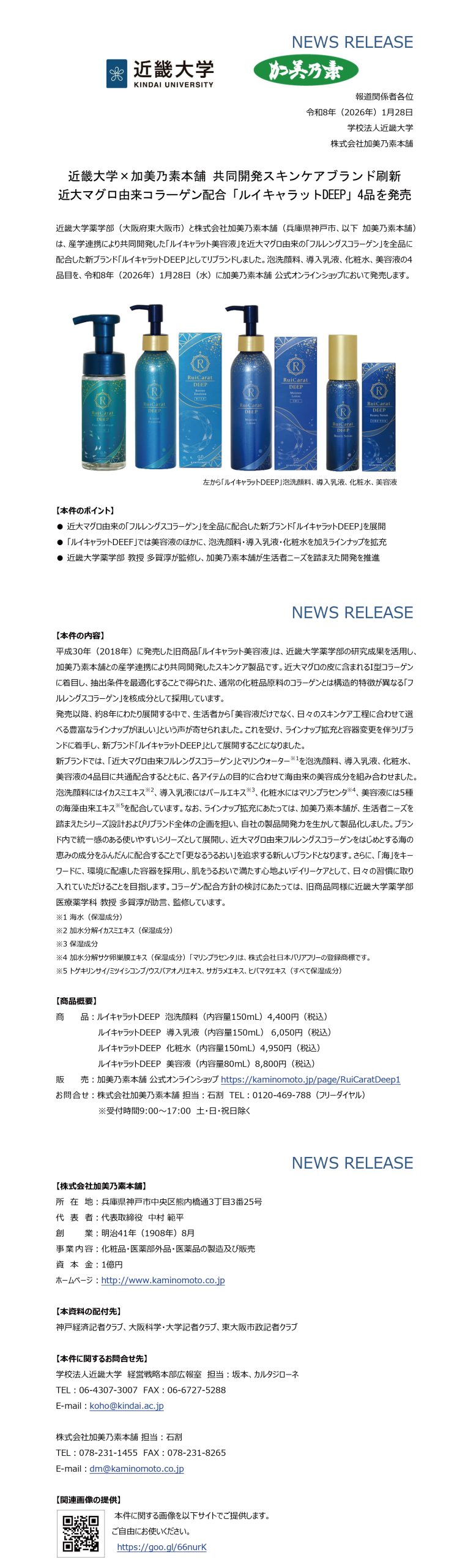 「近畿大学×加美乃素本舗 共同開発」ルイキャラットDEEP発売 / インフォメーション / By admin 2026.1.28 📁 260128_ニュースリリース「近畿大学×加美乃素本舗 共同開発」ルイキャラットDEEP発売