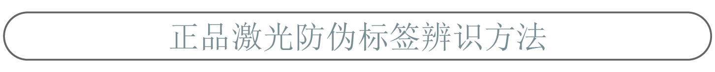 为维护您的消费权益,避免购买到仿冒品,请认明产品包装上的激光防伪标签(如下)。